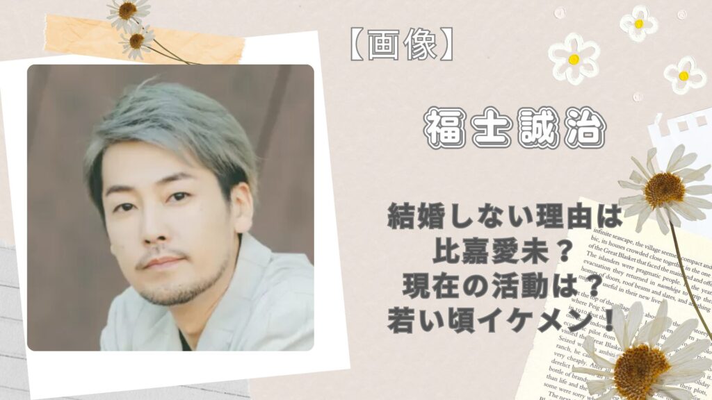 【画像】福士誠治が結婚しない理由は比嘉愛未?現在の活動は?若い頃イケメン!